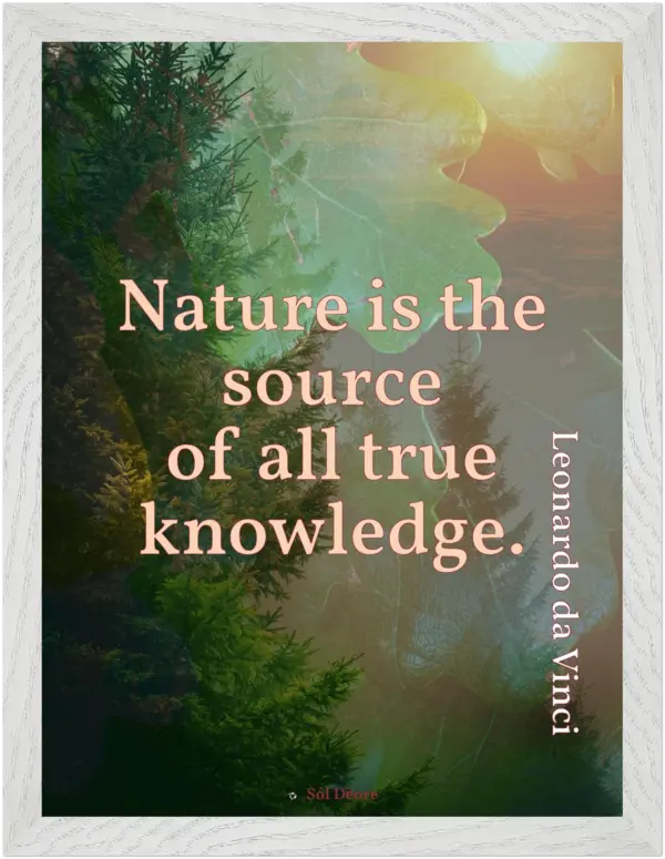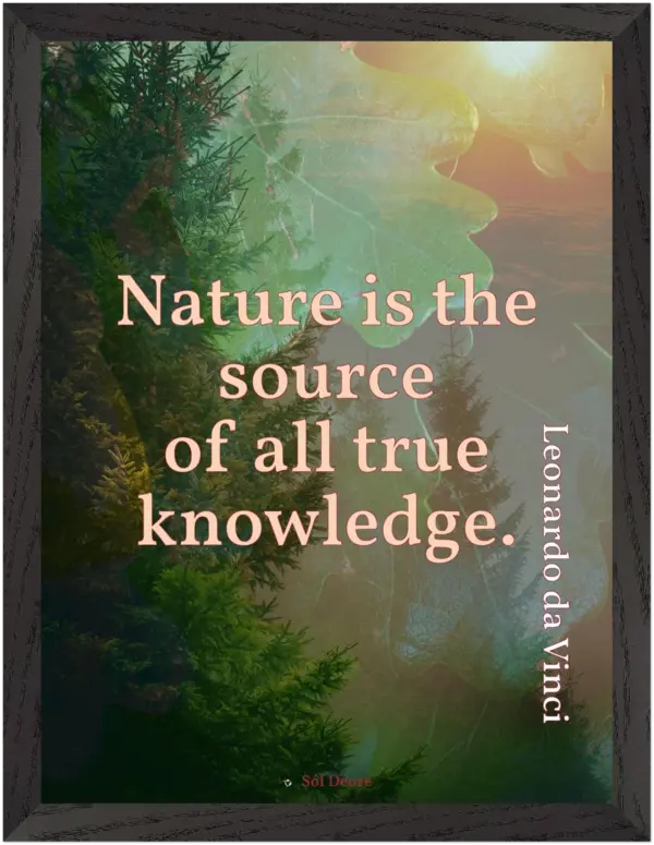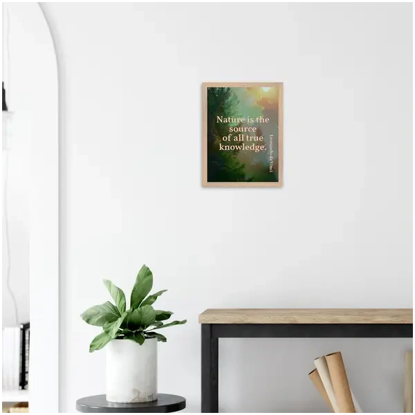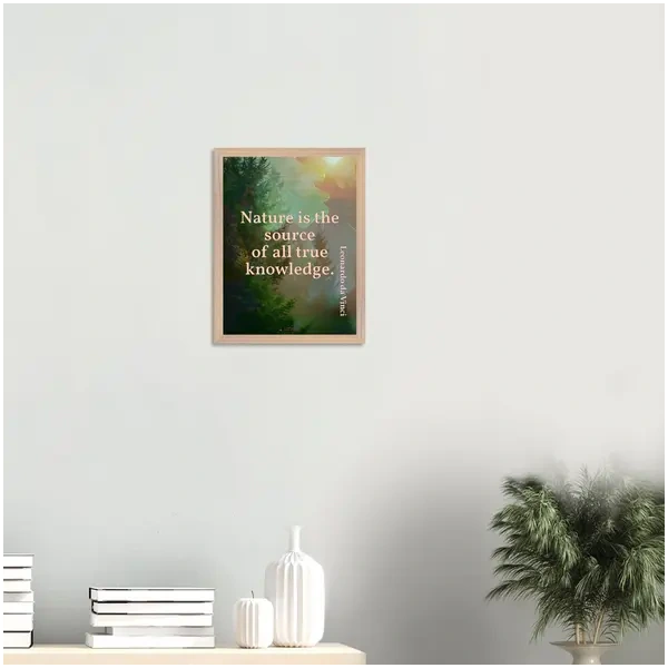 This premium framed matte print presents the foundational quote by Leonardo da Vinci on smooth, luxuriously soft paper in a matte finish. The paper is heavier (200 gsm), with a thickness of 0.26mm for durability, and is Forest Stewardship Council (FSC) certified (or equivalent) for sustainable printing and the responsible management of forests. The print quality is exceptionally sharp and in vivid colour. The print is framed using responsibly sourced oak or ash wood and is ready to hang.